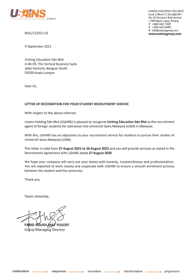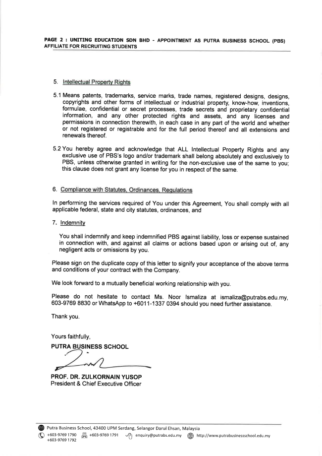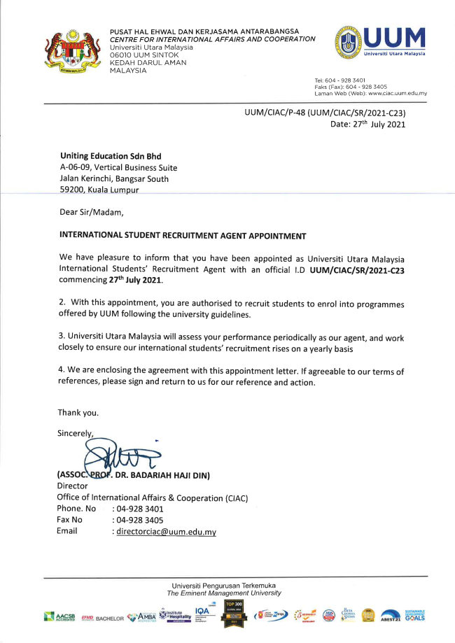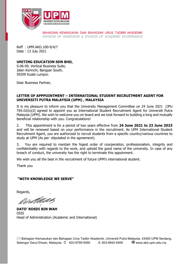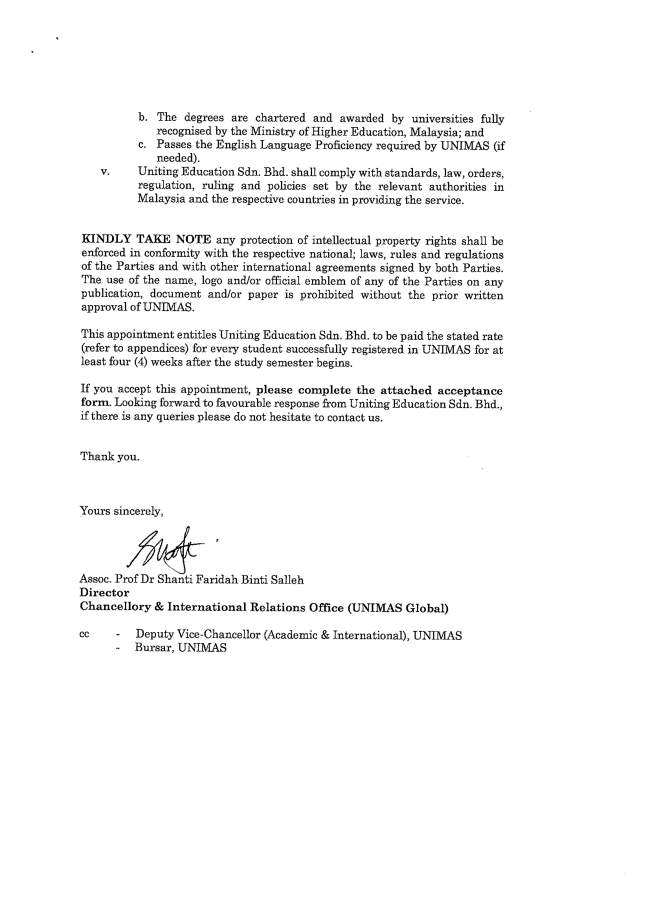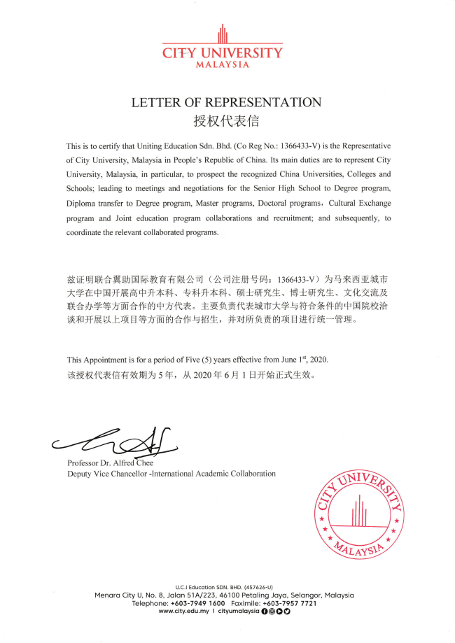 马方大学代理证明信&委任状
