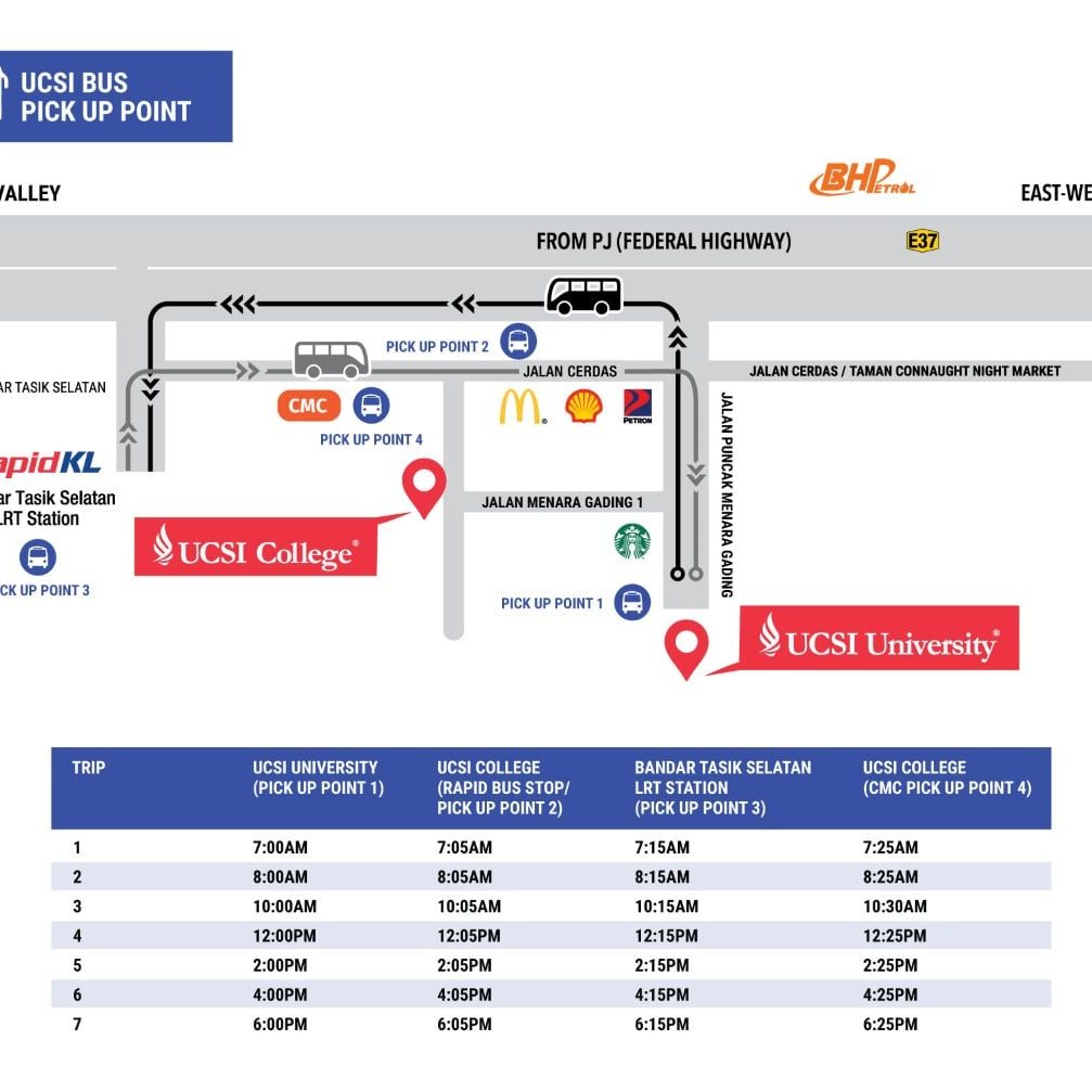 大学在固定的时间会有UCSI巴士在校内外通行,学生可免费搭乘。